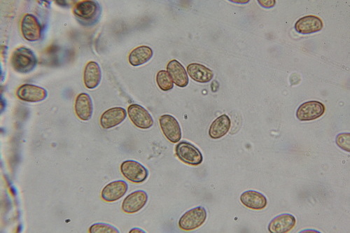 Er hat einen milden Geschmack. Das Sporenpulver ist braun, rot.