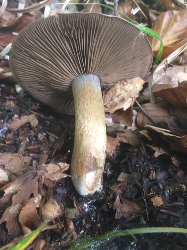 Der Stiel ist braun-blau. Besondere Merkmale: knollige Basis, faserig, Ring, genattert.