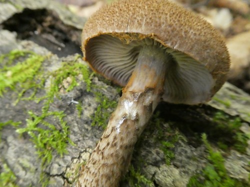 Der Stiel ist blau-braun. Besondere Merkmale: flocken, faserig, Ring, knollige Basis, genattert.