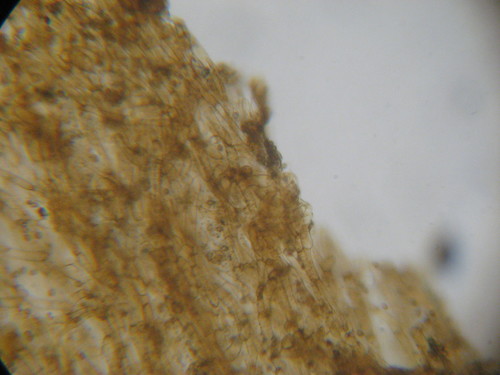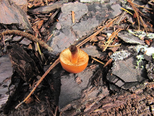 Der Stiel ist braun-orange-schwarz. Besondere Merkmale: flocken, faserig, Wurzelbasis.