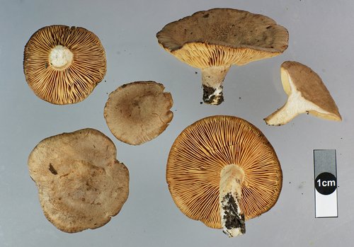 Die Unterseite zeigt Farben von braun/orange/gelb/weiß/rosa. Sie sind angewachsen.