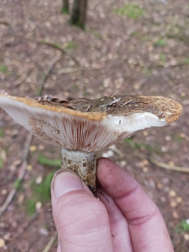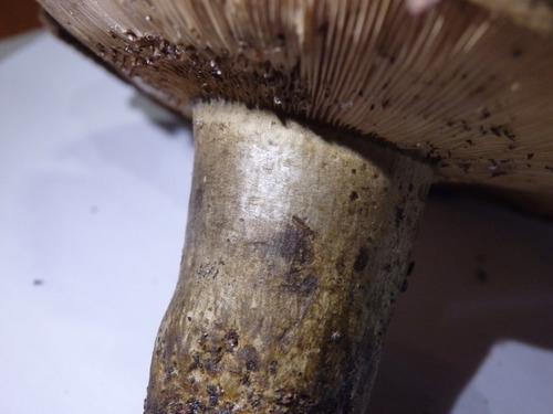 Der Stiel ist orange-grün-gelb-braun. Besondere Merkmale: brüchig, hohl, Wurzelbasis, genattert.