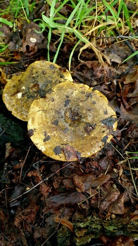 Der 3–19 cm breite Hut ist braun-grün-gelb gefärbt. Die Form ist meist trichterförmig, andere, schirmförmig. Er ist hygrophan (Die Hutfarbe ändert sich bei Feuchtigkeit).