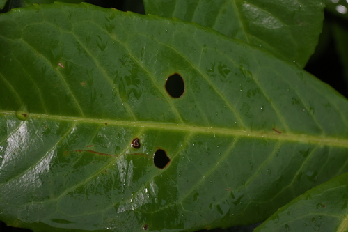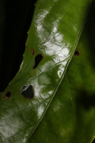 Der Schrotschusskrankheit (Wilsonomyces carpophilus) ist ein Pilz mit dem Speisewert ungenießbar. Die Hauptsaison erstreckt sich von Juli bis November. Er wächst bevorzugt auf Holz.