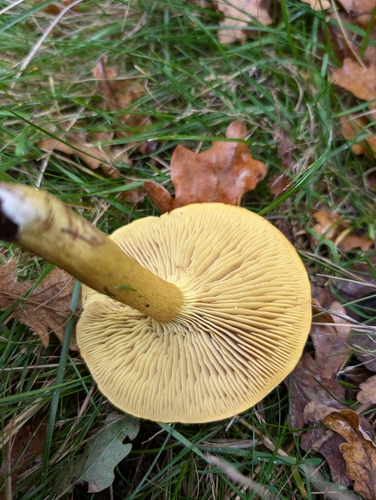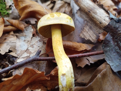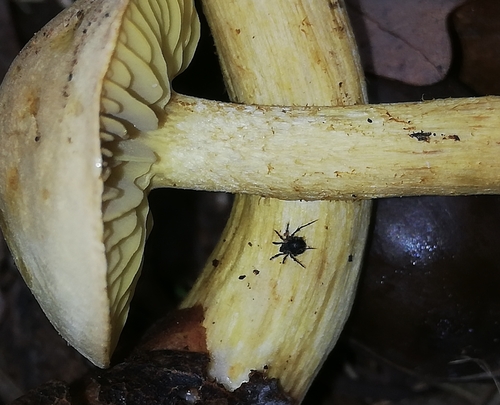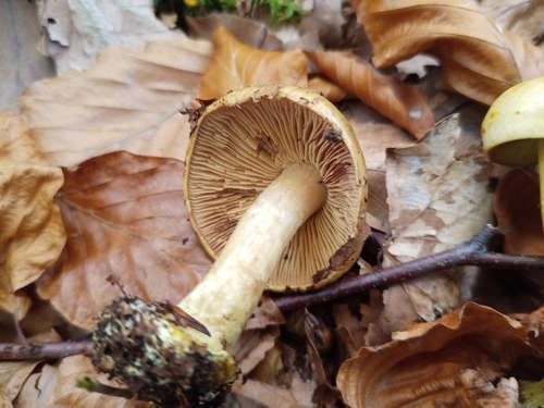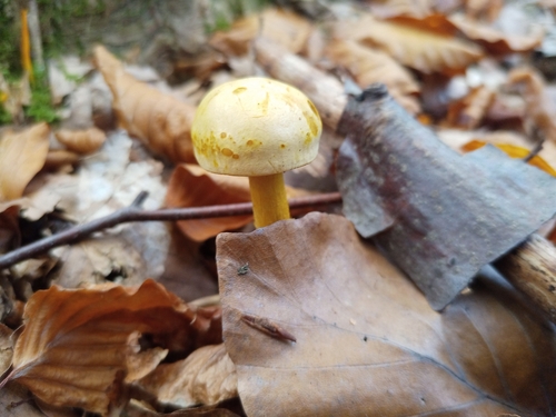 Der Stiel ist gelb-braun-orange-weiß. Besondere Merkmale: faserig.