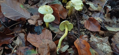Der 3–11 cm breite Hut ist braun-gelb-rot gefärbt. Die Form ist meist schirmförmig, andere, kegelförmig.