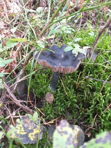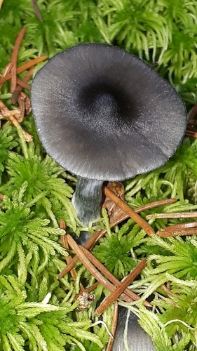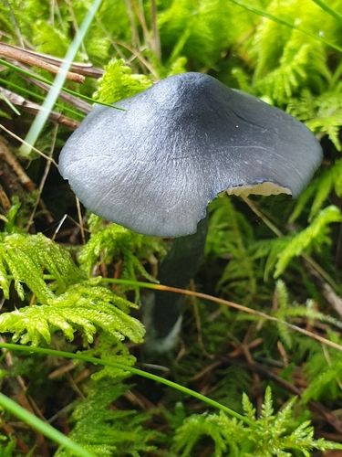 Der 1–7 cm breite Hut ist blau-grau-braun-schwarz gefärbt. Die Form ist meist kegelförmig, andere, schirmförmig.
