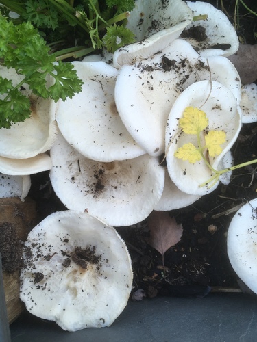 Die Unterseite zeigt Farben von weiß/gelb. Sie sind angewachsen.