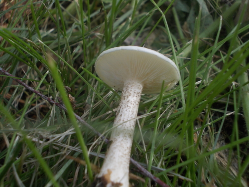Der 2–13 cm breite Hut ist weiß-gelb gefärbt. Die Form ist meist schirmförmig, andere, kegelförmig. Er ist hygrophan (Die Hutfarbe ändert sich bei Feuchtigkeit).