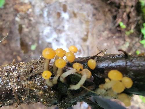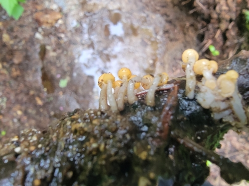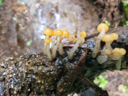 Der 1–2 cm breite Hut ist gelb gefärbt. Die Form ist meist andere.