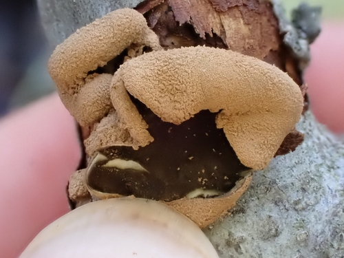 Der Hasel-Kleiebecherling (Encoelia furfuracea) ist ein Pilz mit dem Speisewert ungenießbar. Die Hauptsaison erstreckt sich von Januar bis Dezember. Er wächst bevorzugt auf Holz.