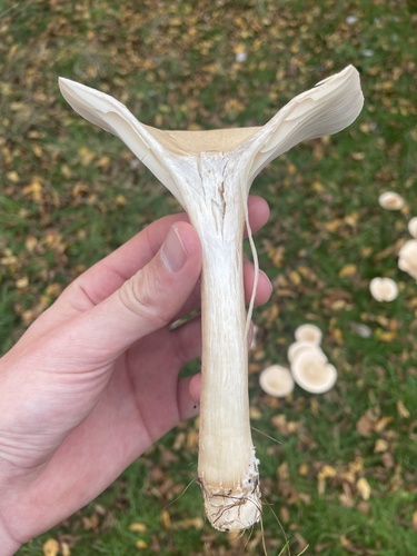 Der Stiel ist orange-gelb-weiß-braun. Besondere Merkmale: faserig, Wurzelbasis.