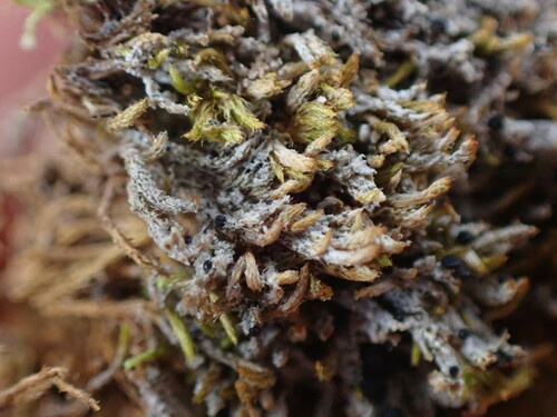 Der 1–11 cm breite Hut ist grau-weiß-braun-grün gefärbt. Die Form ist meist trichterförmig.