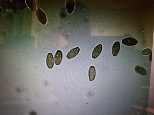 Die Unterseite zeigt Farben von gelb/grün. Sie sind angewachsen, herablaufend.