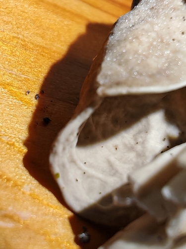 Die Unterseite zeigt Farben von braun. Sie sind angewachsen.