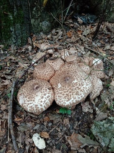 Der 3–22 cm breite Hut ist weiß-braun gefärbt. Die Form ist meist andere, schirmförmig.