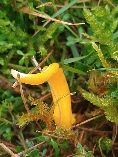 Der 4–15 cm breite Hut ist gelb-orange gefärbt.