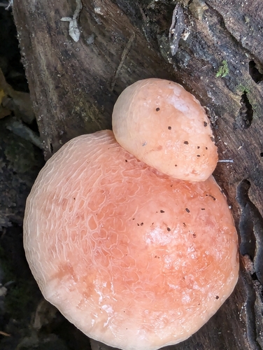 Der 1–5 cm breite Hut ist rosa-orange-rot gefärbt. Die Form ist meist kegelförmig, andere.