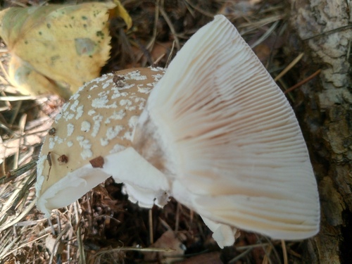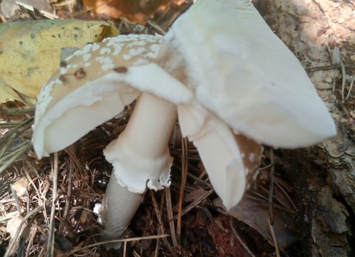 Der Stiel ist weiß-gelb. Besondere Merkmale: knollige Basis, faserig, flocken, Ring, Wurzelbasis, brüchig, genattert.