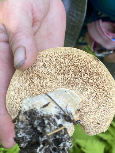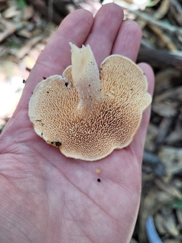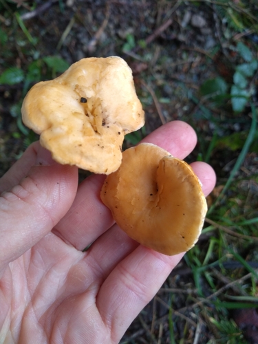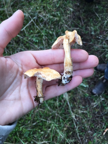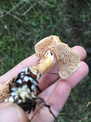 Die Unterseite zeigt Farben von orange/gelb/weiß. Sie sind angewachsen, herablaufend.