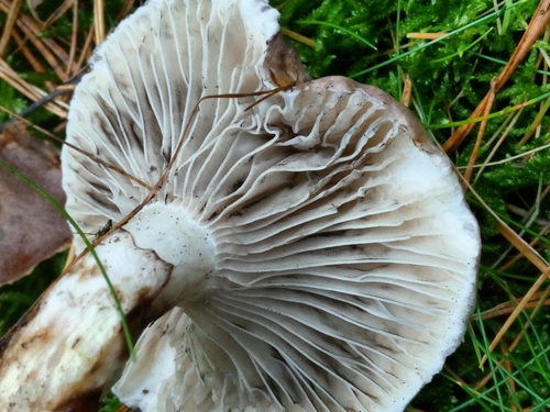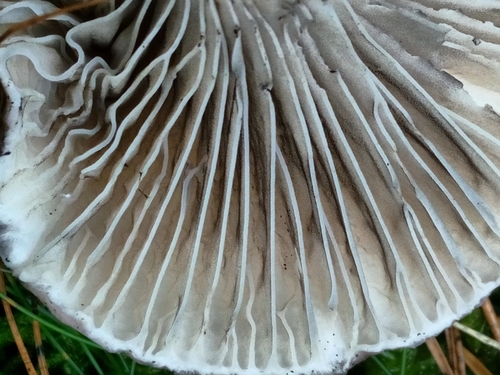 Die Unterseite zeigt Farben von grau/weiß/braun/rosa. Sie sind angewachsen, herablaufend.