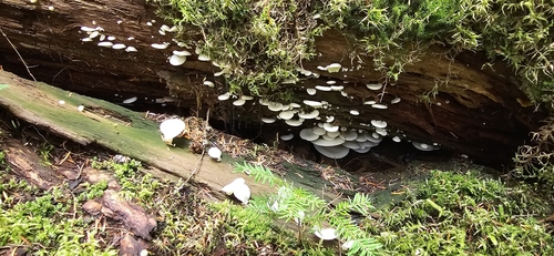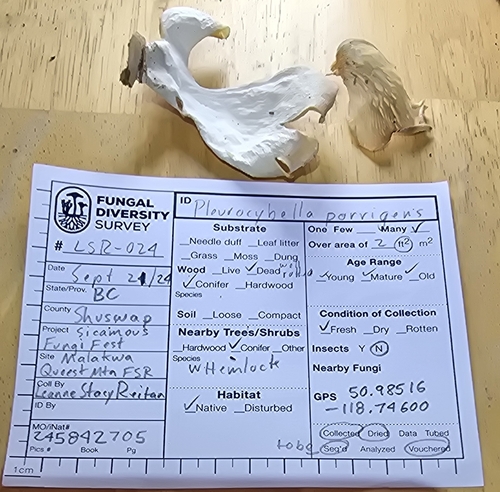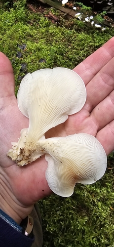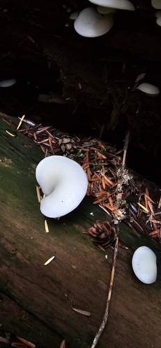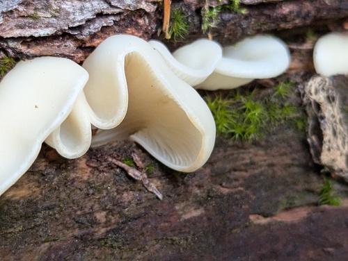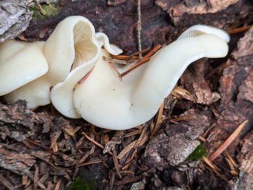 Der Ohrförmiger Seitling (Pleurocybella porrigens) ist ein Pilz und gilt als tödlich. Die Hauptsaison erstreckt sich von Juni bis November. Er wächst bevorzugt auf Holz.