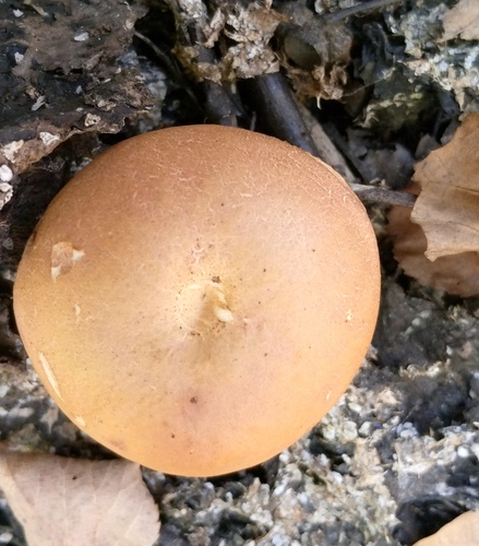 Der 3–12 cm breite Hut ist braun-orange-grau-rosa gefärbt. Die Form ist meist andere.