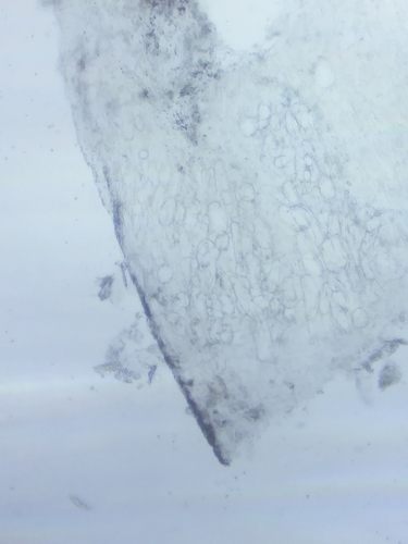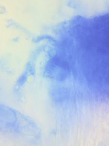 Der Stiel ist rosa-weiß. Besondere Merkmale: faserig, hohl, Wurzelbasis.