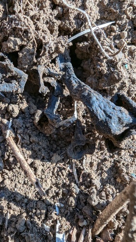 Der Stiel ist grau-schwarz-braun-orange-gelb. Besondere Merkmale: faserig, brüchig, flocken, hohl.