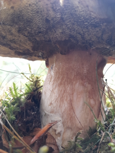 Der Stiel ist weiß-braun-orange. Besondere Merkmale: Netz, faserig, knollige Basis, brüchig.