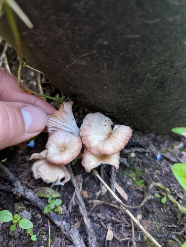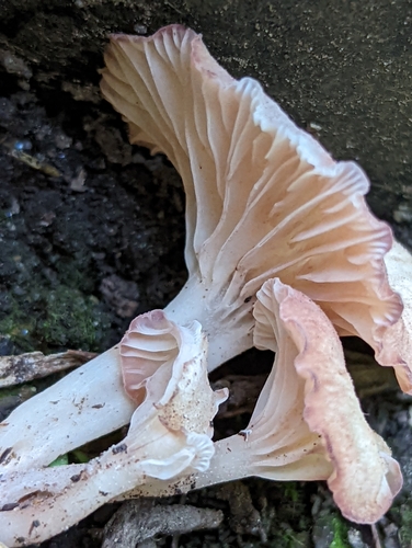 Die Unterseite zeigt Farben von rosa/weiß. Sie sind angewachsen, herablaufend.