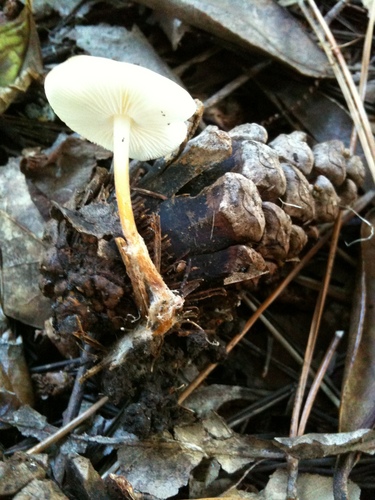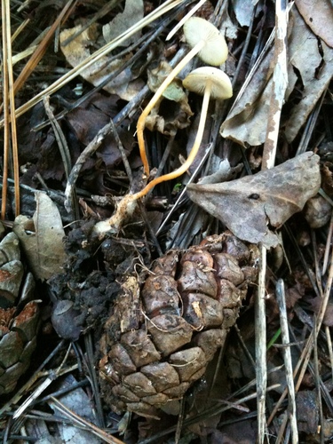 Der Stiel ist orange-braun-weiß. Besondere Merkmale: faserig, hohl.