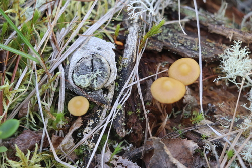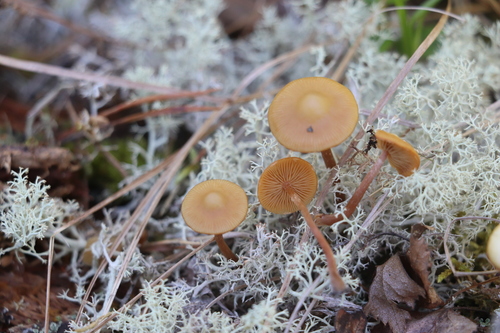 Der 1–5 cm breite Hut ist braun-orange-gelb gefärbt. Die Form ist meist andere. Er ist hygrophan (Die Hutfarbe ändert sich bei Feuchtigkeit).