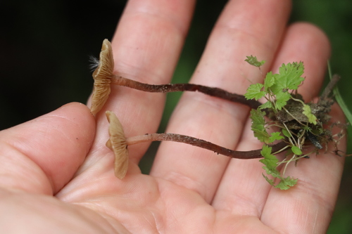 Der Stiel ist braun-schwarz-rot. Besondere Merkmale: faserig, flocken, Wurzelbasis, hohl, genattert.