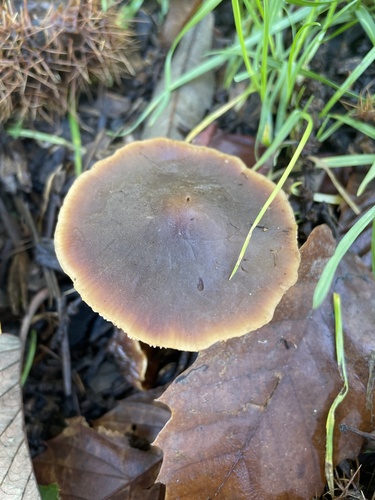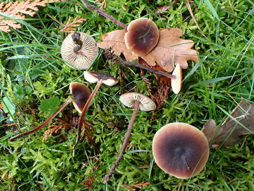 Der 1–5 cm breite Hut ist braun-orange-weiß-gelb gefärbt. Die Form ist meist schirmförmig, andere, kegelförmig. Er ist hygrophan (Die Hutfarbe ändert sich bei Feuchtigkeit).