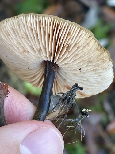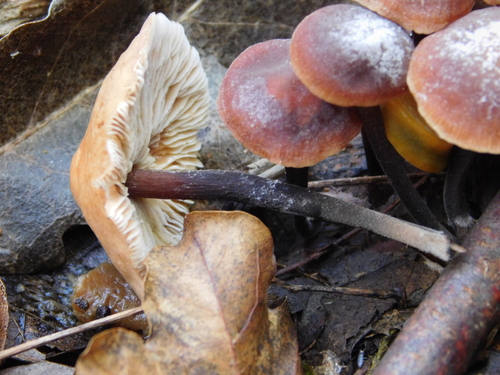 Der Stiel ist rot-schwarz-braun-orange. Besondere Merkmale: faserig, brüchig, hohl, Wurzelbasis.