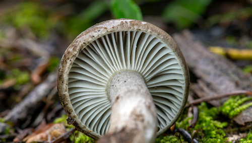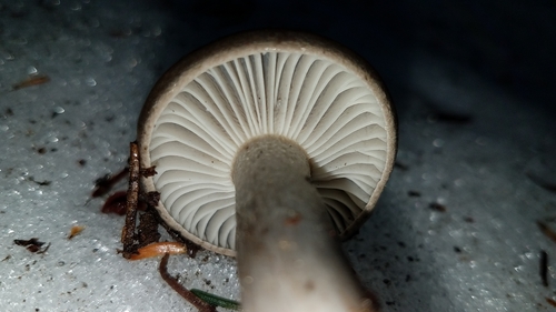 Die Unterseite zeigt Farben von grau/weiß. Sie sind angewachsen, herablaufend.