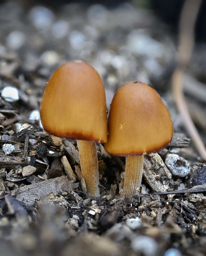 Der 1–5 cm breite Hut ist gelb-orange gefärbt. Die Form ist meist andere, kegelförmig, schirmförmig, geriefter Hut. Er ist hygrophan (Die Hutfarbe ändert sich bei Feuchtigkeit).