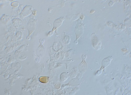 Der Stiel ist gelb-braun. Besondere Merkmale: flocken, faserig, Wurzelbasis.