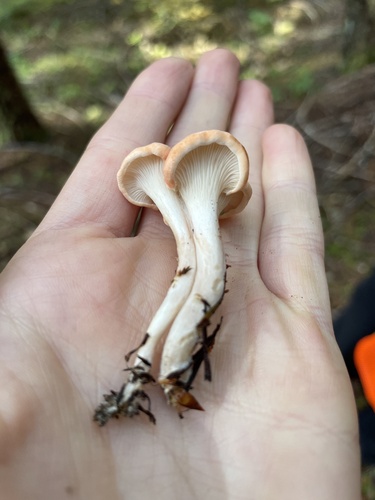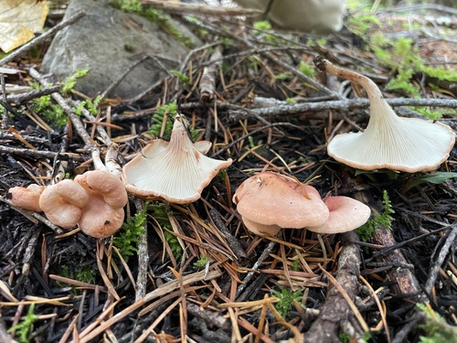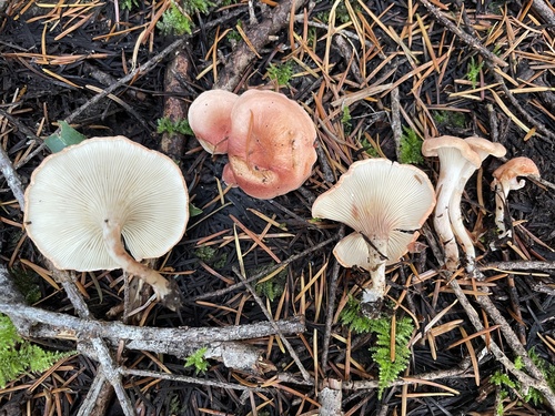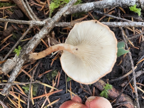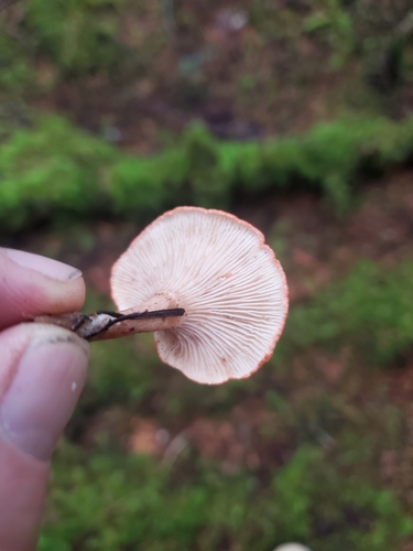 Die Unterseite zeigt Farben von rosa/gelb/weiß/braun/orange. Sie sind herablaufend, angewachsen.