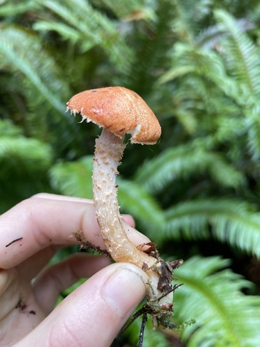 Der Stiel ist orange-rot-braun. Besondere Merkmale: flocken, Ring, faserig, hohl, genattert.