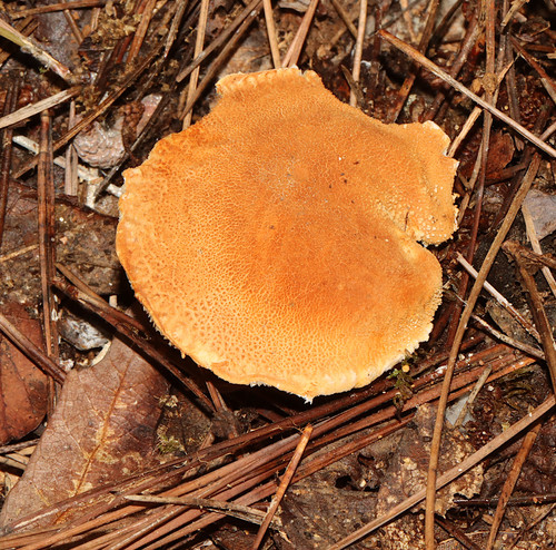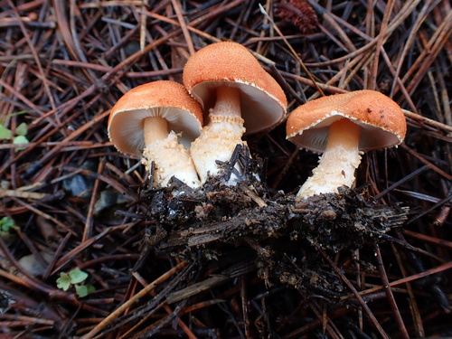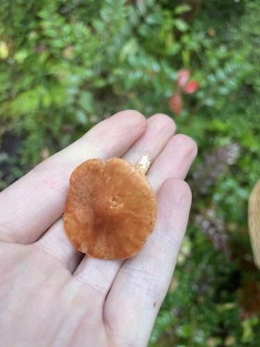 Der 1–7 cm breite Hut ist orange-braun gefärbt. Die Form ist meist schirmförmig, andere, trichterförmig, kegelförmig.