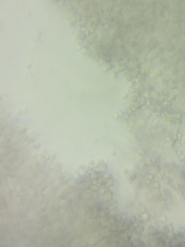 Die Unterseite zeigt Farben von weiß/gelb. Sie sind angewachsen.