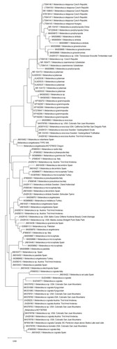 Der Stiel ist braun-weiß-orange. Besondere Merkmale: knollige Basis, faserig, Wurzelbasis.
