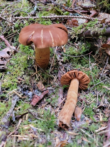 Die Unterseite zeigt Farben von orange/braun/rot. Sie sind angewachsen.