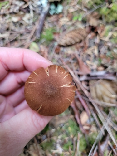 Der 2–10 cm breite Hut ist braun-rot-orange gefärbt. Die Form ist meist kegelförmig, schirmförmig, andere. Er ist hygrophan (Die Hutfarbe ändert sich bei Feuchtigkeit).