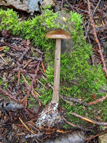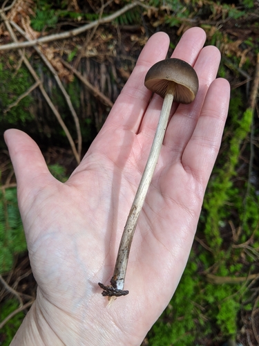 Der Stiel ist grau-braun. Besondere Merkmale: flocken, faserig, Wurzelbasis.