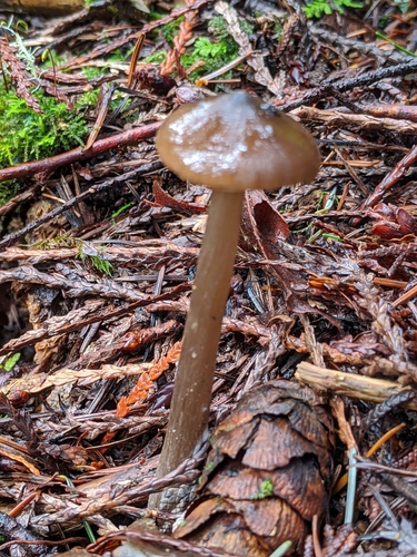 Der 1–7 cm breite Hut ist braun-grau-orange gefärbt. Die Form ist meist andere, kegelförmig. Er ist hygrophan (Die Hutfarbe ändert sich bei Feuchtigkeit).