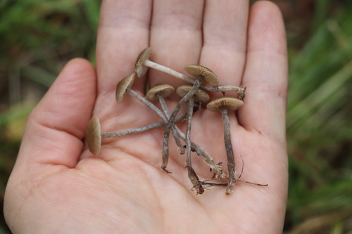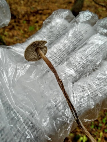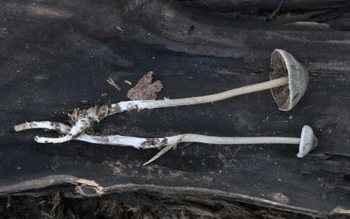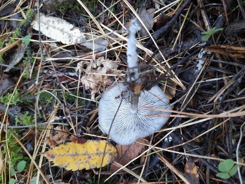 Der Stiel ist grau-braun-blau. Besondere Merkmale: faserig, Wurzelbasis, hohl.
