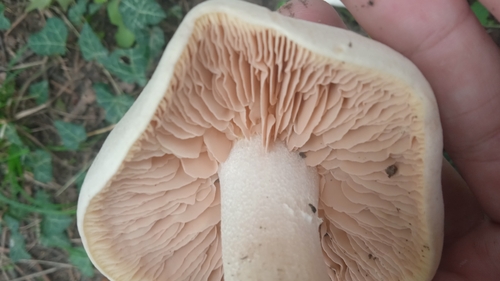 Die Unterseite zeigt Farben von weiß/gelb/rosa/orange/rot. Sie sind angewachsen, frei.